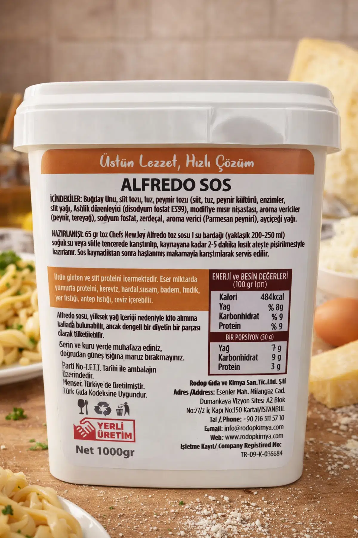 Dünya mutfağının en sevilen soslarından biri olan Alfredo, Chef's New Joy uzmanlığıyla artık çok daha pratik. Gerçek parmesan peynir aroması ile hazırlanan bu toz karışım, size her tabakta aynı ipeksi kıvamı ve zengin lezzeti sunar.