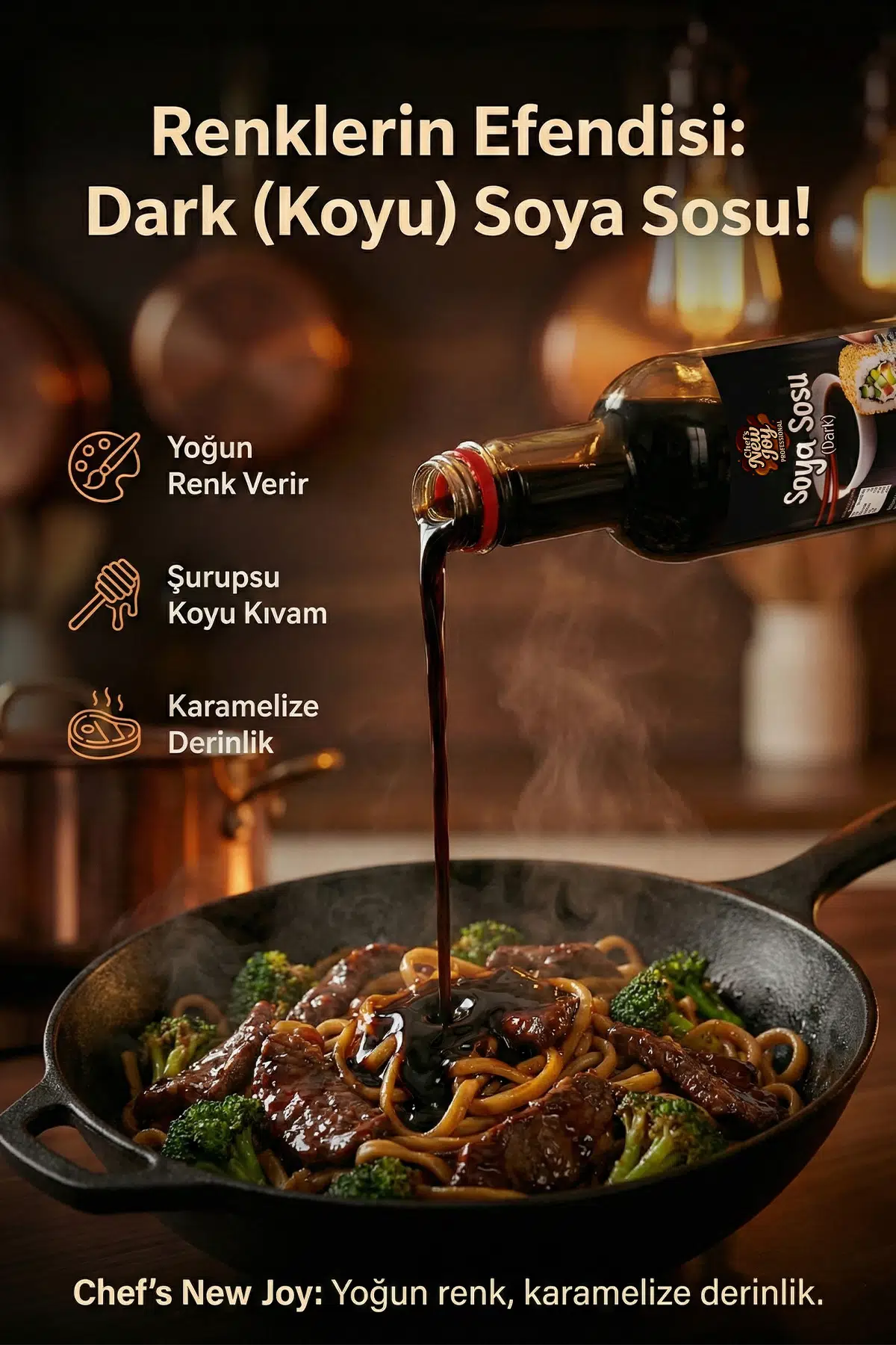 Asya mutfağının "renk ustası" ve lezzet sihirbazı ile tanışın! Chef's New Joy Dark Soya Sosu, bildiğiniz standart soya sosundan çok farklıdır. Daha uzun süre fermente edilmiş ve genellikle melas veya karamel ile zenginleştirilmiş bu özel sos, yemeklerinize sadece tuzluluk değil, derin bir renk, parlaklık ve yoğun bir aroma katmak için tasarlanmıştır.