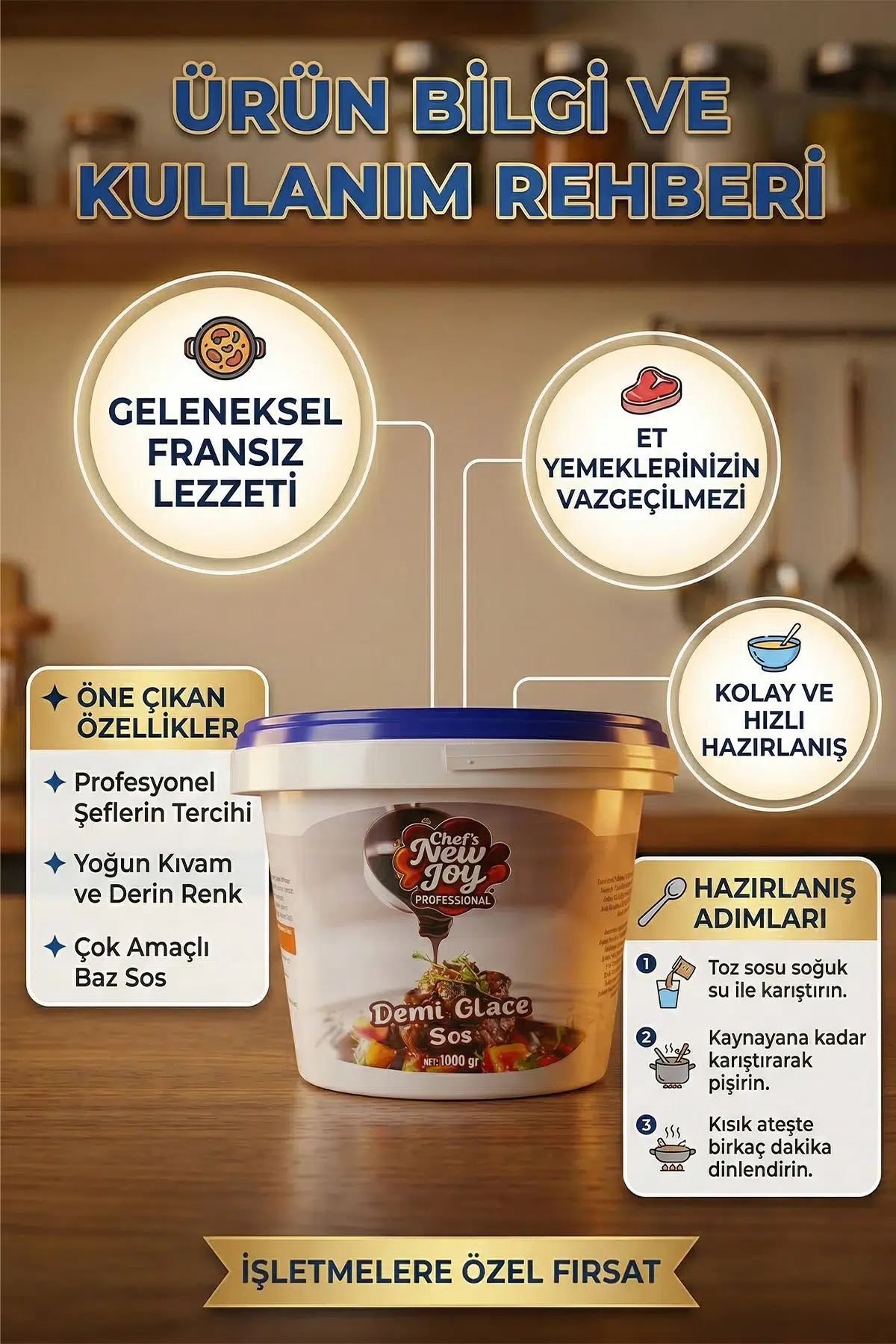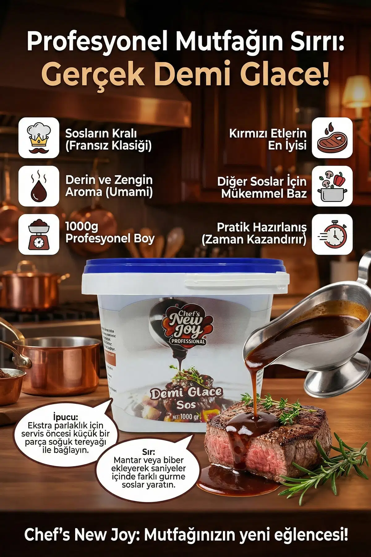 Et yemeklerinizin lezzetini zirveye taşıyacak, geleneksel Fransız mutfağının kalbi Demi Glace Sos şimdi pratik toz formuyla stoklarımızda! Uzun saatler süren kemik suyu kaynatma zahmetine son veren bu özel karışım, saniyeler içinde ideal kıvam ve derinlik sağlar.