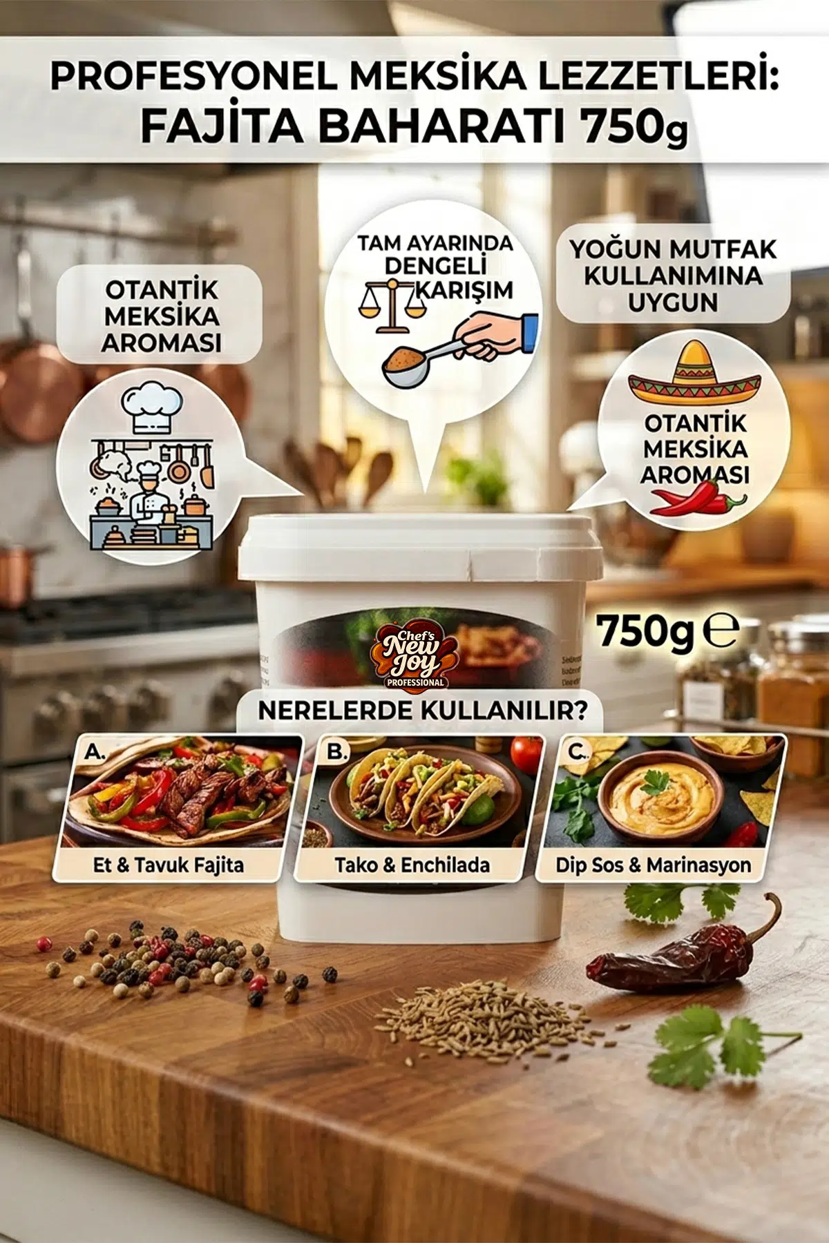 Meksika mutfağının vazgeçilmezi fajita lezzetini, şeflerin gizli dokunuşuyla sofralarınıza taşıyoruz. Chef’s New Joy Fajita Baharatı, ideal baharat dengesiyle et, tavuk ve sebzelerinize mühürleme anından itibaren eşsiz bir aroma ve renk katar.