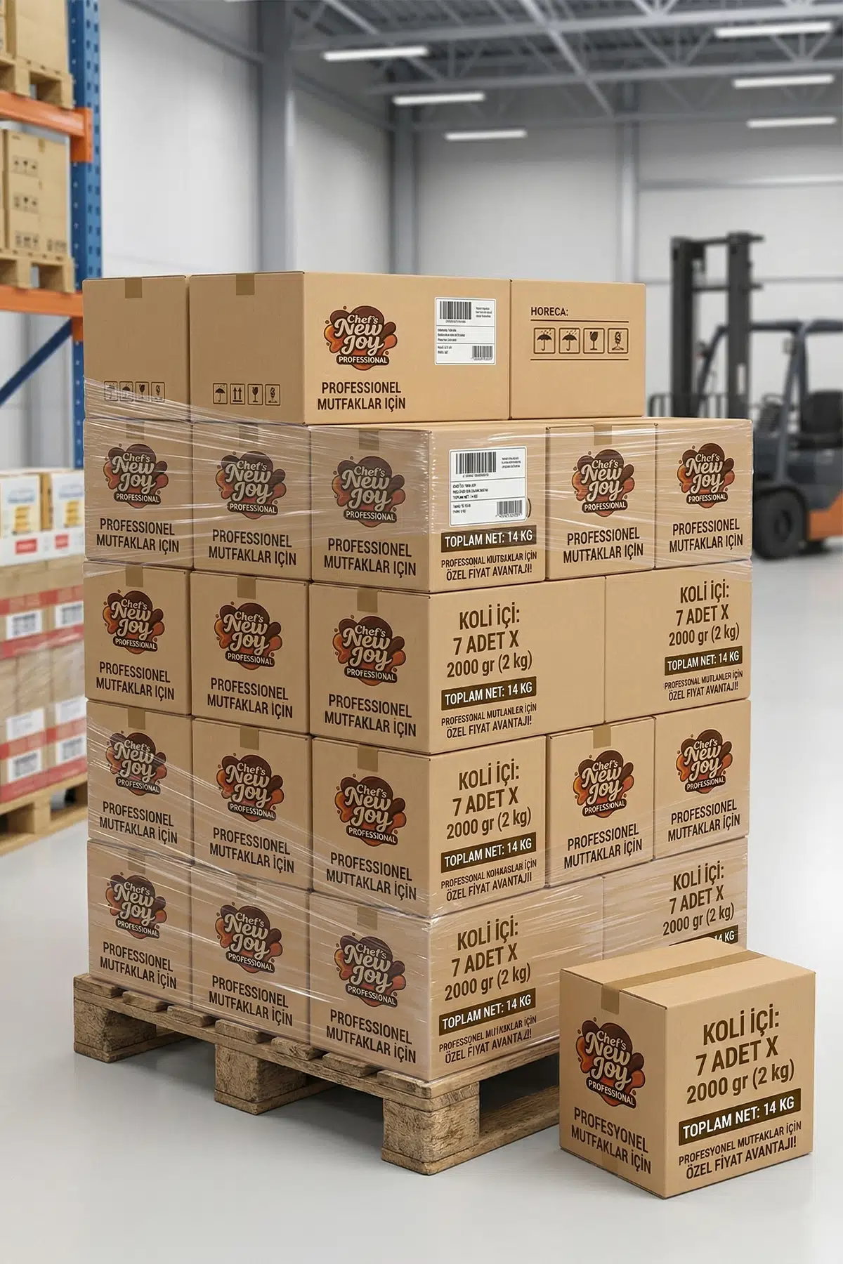 Yüksek Verimlilik: Toplamda 14 kg toz ürün içeren bu koli, yüzlerce porsiyonluk servis kapasitesiyle depo dostu ve bereketli bir çözümdür.